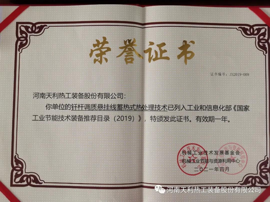 會議發(fā)布了2020年《國家工業(yè)節(jié)能技術(shù)裝備推薦目錄》及《“能效之星”產(chǎn)品目錄》入圍企業(yè)名單,并為2019、2020年入圍企業(yè)發(fā)放能效標識及相關(guān)證書。天利熱工兩項技術(shù)被列入推薦目錄,其中釬桿調(diào)質(zhì)懸掛線蓄熱式熱處理技術(shù)被列入《國家工業(yè)節(jié)能技術(shù)裝備推薦目錄(2019)》,超大型4段蓄熱式高速燃燒技術(shù)被列入《國家工業(yè)節(jié)能技術(shù)裝備推薦目錄(2020)》。